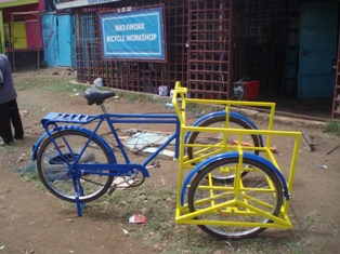 For many entrepreneurs, tricycles can be an efficient way of transporting goods. For instance garbage collectors use tricycles for going around neighbourhoods and collecting garbage and bringing it to recycle units where they can get some income from. The bicycle workshops of Cycling out of Poverty’s partner organisations in Kenya, Uganda and Burkina Faso will be producing the tricycles. Currently, the first tricycle has been made and will be taken into use next week. Volunteer Arjen Reinders has designed and produced this model, and he is also training the technicians of the workshop on how they can produce the bicycle themselves. For more information about this project click here.